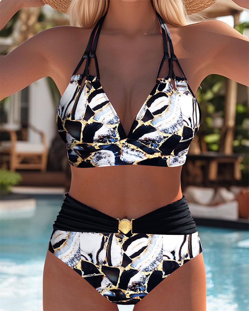 Bikini To-dels Set Med Halterhals og Kontrastfarge Design