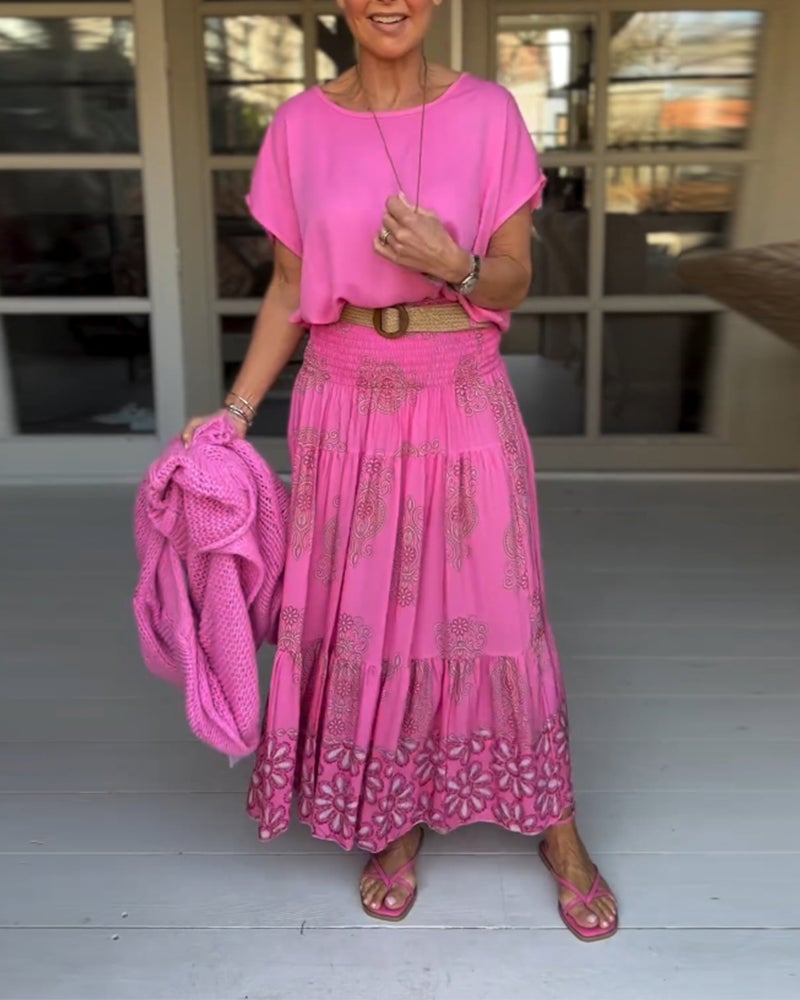 Skjørt med blomsterpaneler og folder