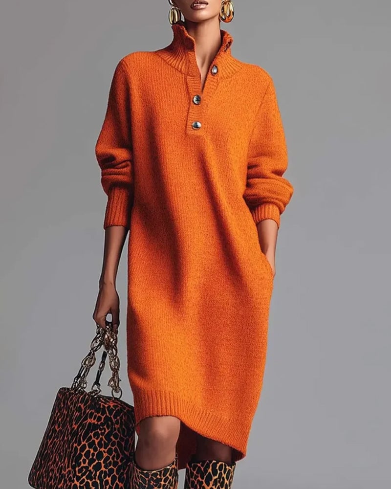 Helfarget Kjole Med Knapper Og Høy Hals
